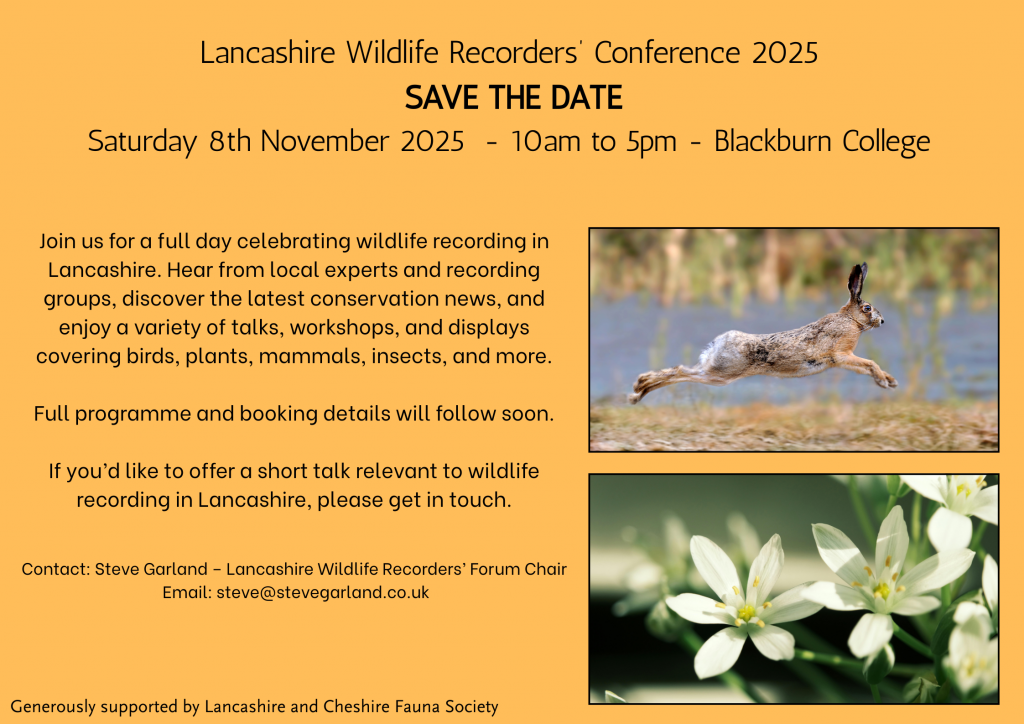 The Lancashire Wildlife Recorders’ Conference returns to Blackburn College on Saturday 8th November 2025.